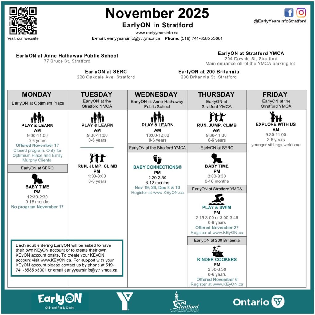 EarlyON in the City of Stratford Calendar: (November 2025)